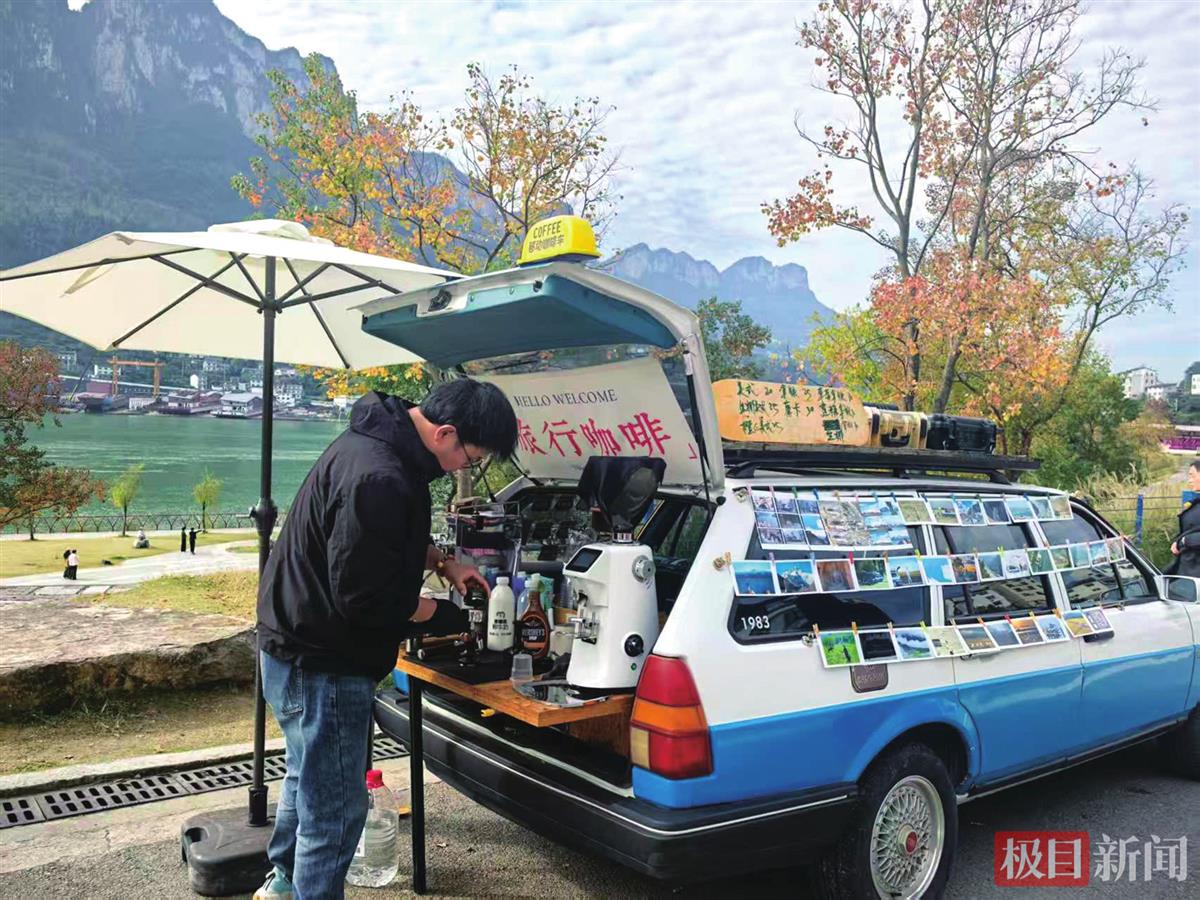“老板,来一杯焦糖拿铁。”11月20日,夷陵区乐天溪镇莲沱畔服务区,一辆蓝白色汽车后备箱敞开,“90后”周云麻利地磨豆、萃取、拉花,浓郁的咖啡香在风中散开。