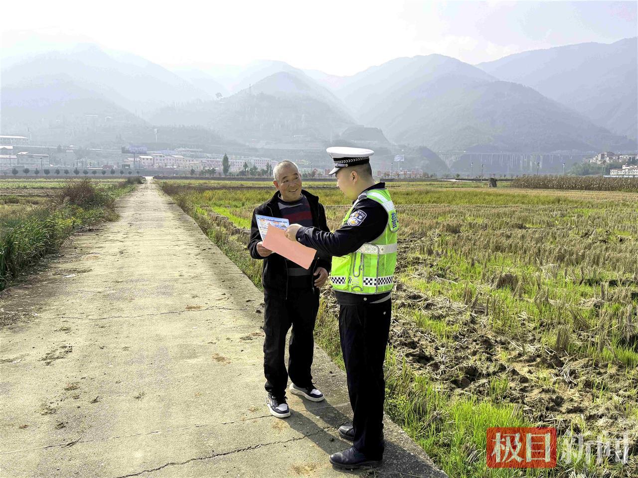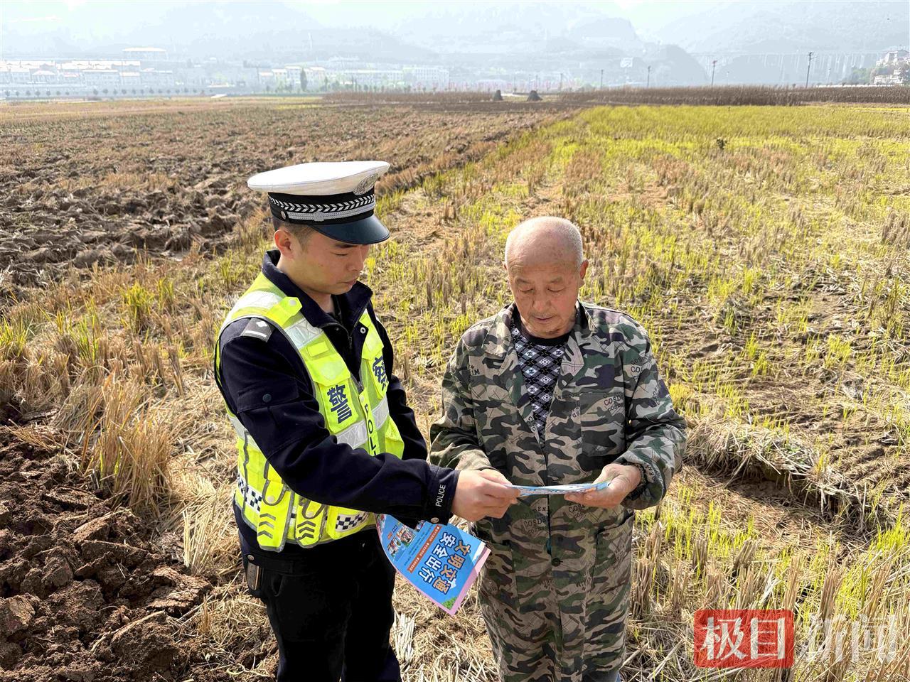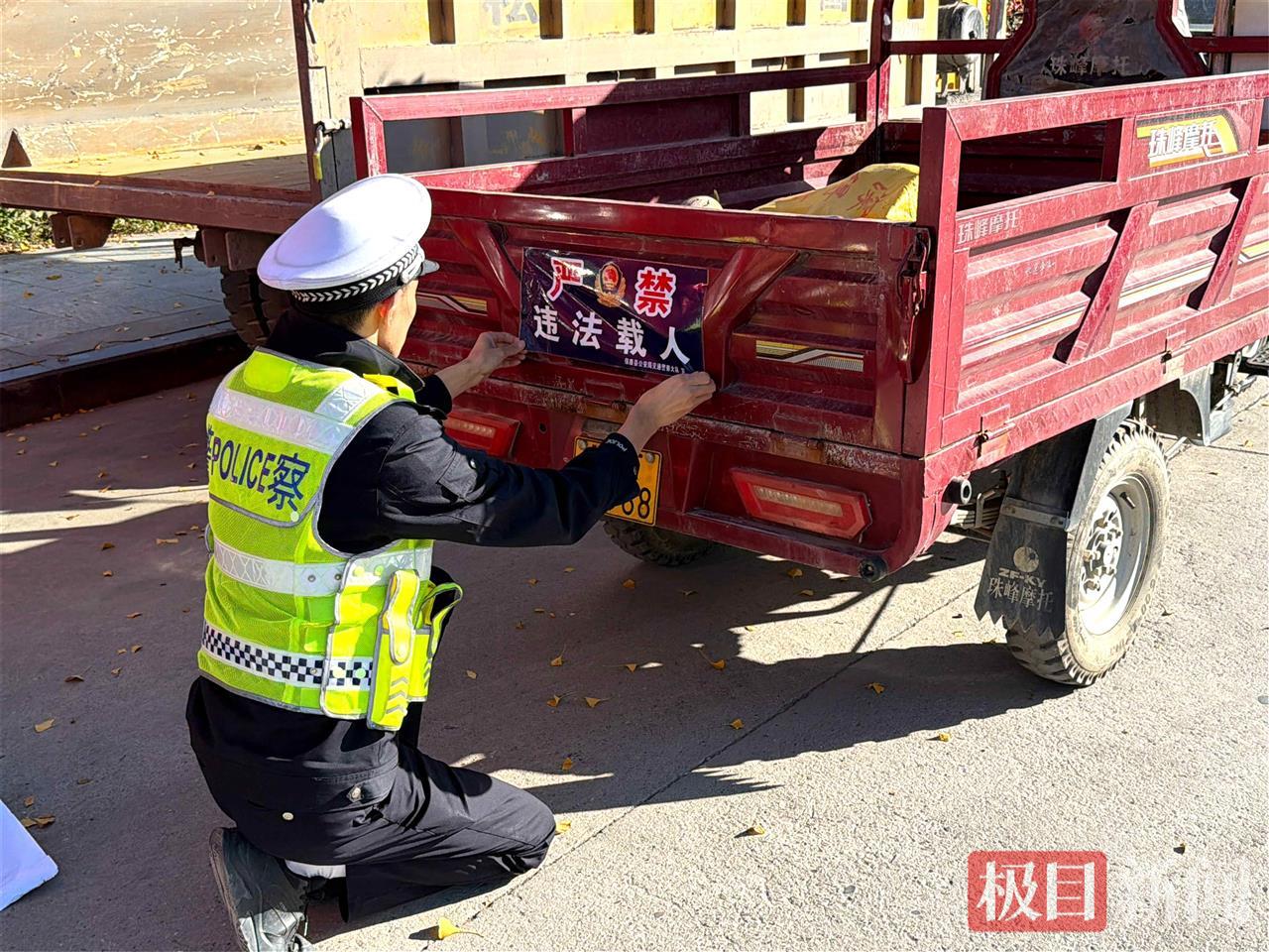 宣讲刚结束,宣传小队就背上资料袋、带上反光贴,化身“流动宣传员”走进村民家中。“您家三轮车的刹车有点松,有空赶紧去修修”“这‘严禁载人’的反光贴贴在车尾,晚上开车别人看得清”,民警一边为村民粘贴反光贴,一边细致检查车辆安全状况,用拉家常的语气反复叮嘱安全事项。在田间地头,趁着村民歇晌的间隙,民警搭起“田间课堂”,一句“农忙再忙,安全不忘”的贴心叮嘱,让“农用车严禁载人”“雨天路滑慢行车”的安全理念,随着泥土的芬芳传到每一位村民耳中,让交通安全宣传既有力度更有温度。