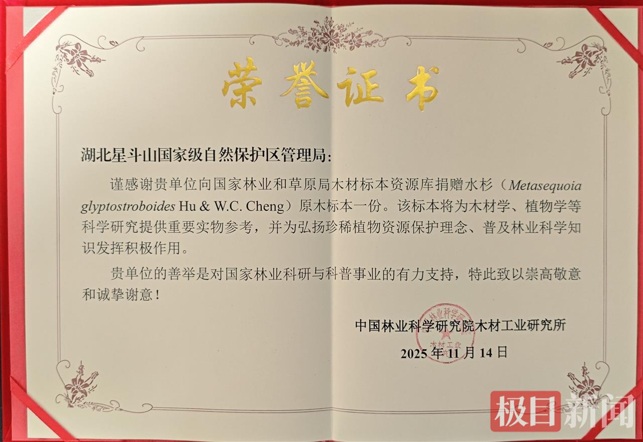 接收该标本的中国林业科学研究院木材标本馆,现为亚洲馆藏量最大的木材标本馆。未来,中国林科院将依托这一标本开展深度研究,保护区也将持续推进水杉种质资源的保护与可持续利用。
