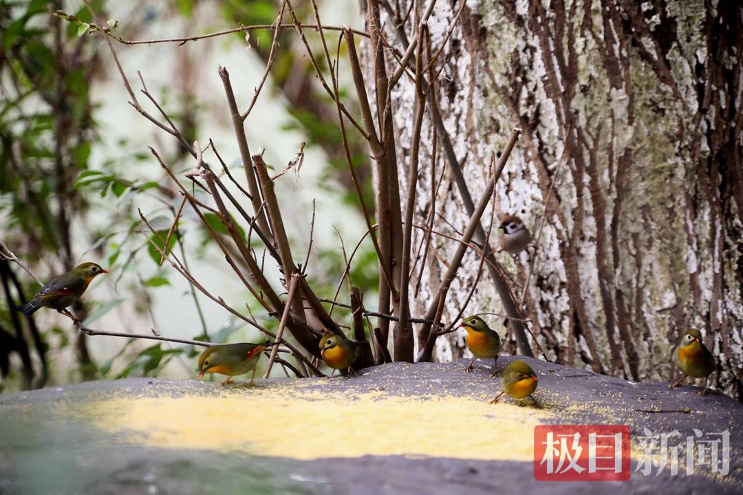 “知道它们要来了,我们提前备好了包谷面、高粱粒,都是原生态的食物,不添加任何调料。”市民一边小心翼翼地撒放食物,一边介绍道。为了让相思鸟安全越冬,不少市民自发组成“护鸟小分队”,定期清理林内垃圾,在鸟类常出没的区域定点投放食物,既不打扰鸟儿的自然习性,又能为它们补充能量。摄影爱好者张先生感慨:“现在来青年林拍鸟成了常态,这些小家伙一点不怕人,镜头里的它们或啄食嬉戏,或振翅跳跃,每一个瞬间都充满生机。”