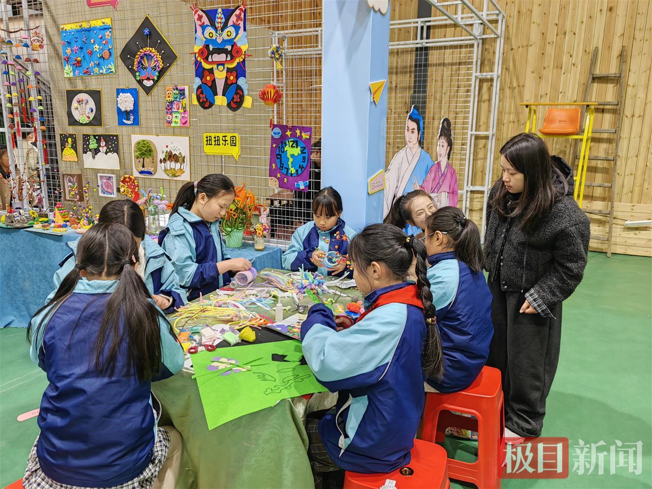 走进另一片场地,仿佛进入童话世界。上百名中小学生在教师指导下或挥毫泼墨,以笔绘心;或拿起剪刀,做着手工;或用黏土、纸片、染料等制作一个个小艺术品。