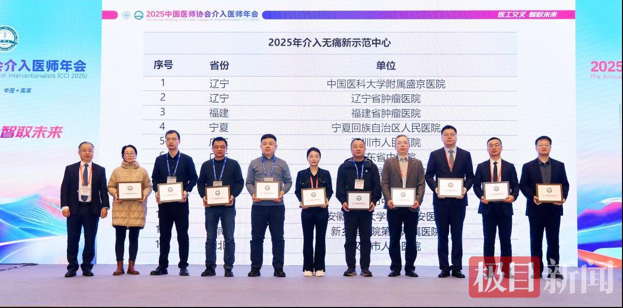 近日,2025中国医师协会介入医师年会(CCI2025)在南京召开,会上传来重磅喜讯:湖北襄阳市中心医院肿瘤微创介入病区凭借扎实的技术实力与优质的舒适化医疗服务,成功斩获“全国介入无痛示范中心”称号,成为襄阳市首家获此国家级殊荣的医疗机构,标志着该院肿瘤微创介入舒适化医疗水平跻身全国先进行列。肿瘤微创介入病区肖天林主任代表团队现场接受授牌。