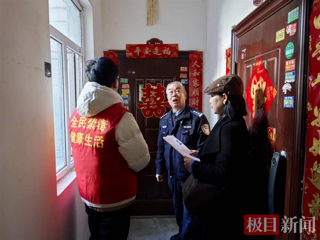 11月26日,湖北枣阳市公安局北城派出所联合社区工作人员、禁毒社工,以“敲门行动”的形式开展禁种铲毒宣传活动,将禁毒知识精准传递到每家每户,凝聚全民禁毒共识。