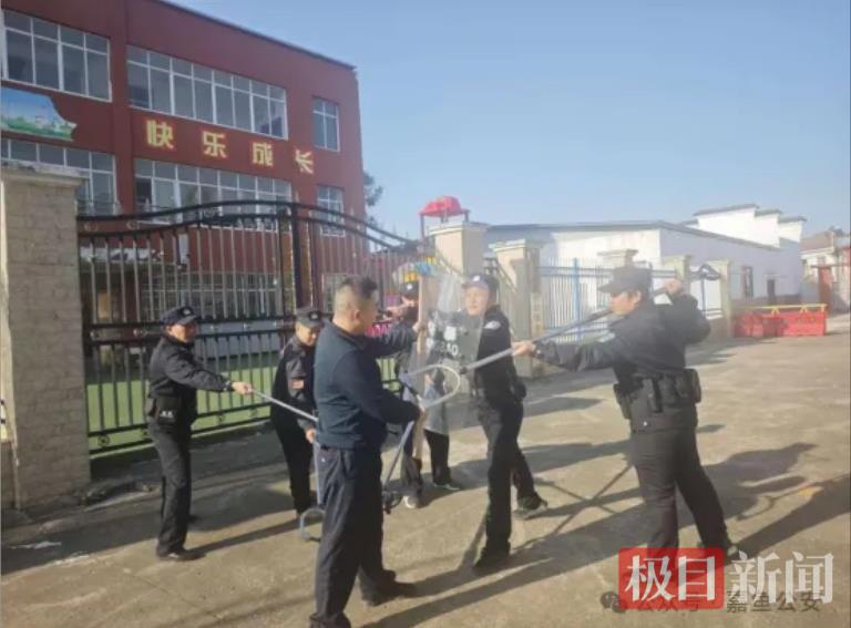 派出所民警前期深入校园开展实地调研,结合校园门口车流量大、社会面人员闲散等特点,协助校方制定“最小作战单元”组建方案。创新打造“校长+安保人员+责任教师+责任民警”的多元化队伍架构,明确指挥调度、现场处置、人员疏散、医疗救助等岗位职责,配齐防暴盾牌、钢叉、防暴棍等安防器械及急救设备,建立专人专班值守与定期巡查机制,确保单元“人员到位、装备齐全、职责清晰”。