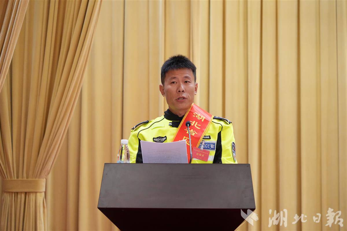 湖北日报讯(记者周寿江、李娅晶、赵恒、通讯员王亮)11月28日上午,湖北省见义勇为英雄先进表彰大会在武汉举行,24名见义勇为个人和15个群体获表彰。退役军人、武汉市公安局硚口区交通大队一中队辅警班长韩靖和武汉铁路局武汉客运段列车员、长江救援志愿队队员陈才斌光荣上榜,被授予“湖北省见义勇为先进群体”称号。表彰大会上,“靖哥哥”韩靖作为受表彰代表,第一个上台发言——
