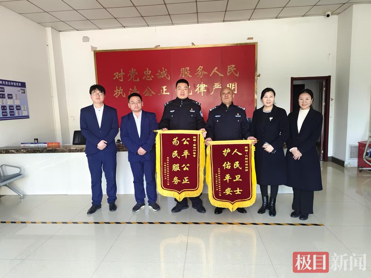 一面锦旗,一份认可;一声感谢,一份担当。11月27日,湖北襄阳市科技馆工作人员将写有“人民卫士 护佑平安”“公平公正 为民服务”的2面锦旗送到湖北襄阳东津公安分局六两河派出所,向快速化解纠纷、保障群众权益,优化法治营商环境的民警们表达诚挚谢意。