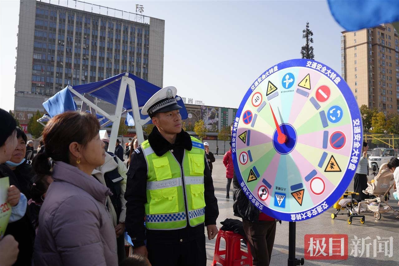 在模拟酒驾体验区,市民佩戴酒精模拟眼镜穿越障碍通道,真实感受过量饮酒后视线模糊、身体失衡的真实感受,直观认识到酒驾危险;“一盔一带”实操区,民警手把手指导正确佩戴方式,纠正日常误区;交通知识闯关区的安全标识大转盘,让市民在答题赢取定制纪念品的过程中,轻松巩固法规知识。同时,民警结合冬季出行特点,重点讲解雨雪天气驾驶技巧、电动车规范骑行注意事项,并向来往市民发放宣传手册、安全反光贴、安全头盔等物资。