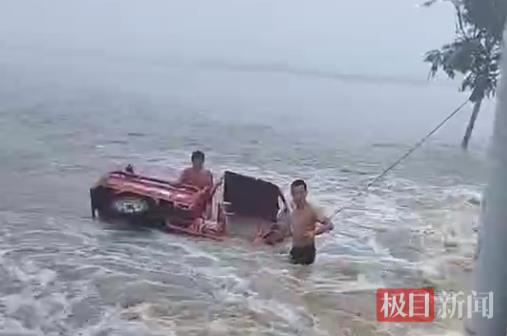 车子在316国道龙王段的洪流中艰难前行。突然,马路对面一抹红色吸引了他们的视线——一辆三轮车侧翻在水中,一个身影正无助地随波沉浮。“快看!有车翻了,人还在水里!”胡永辉的心瞬间揪紧。父亲胡家宝当即决断:“前面调头,我们过去救她!”