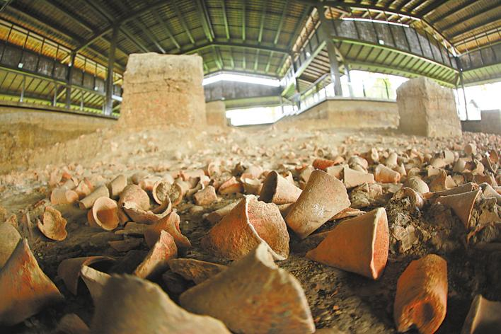 三房湾遗址点,红陶杯遗存铺满一地。(湖北日报通讯员 刘银斌 摄)
