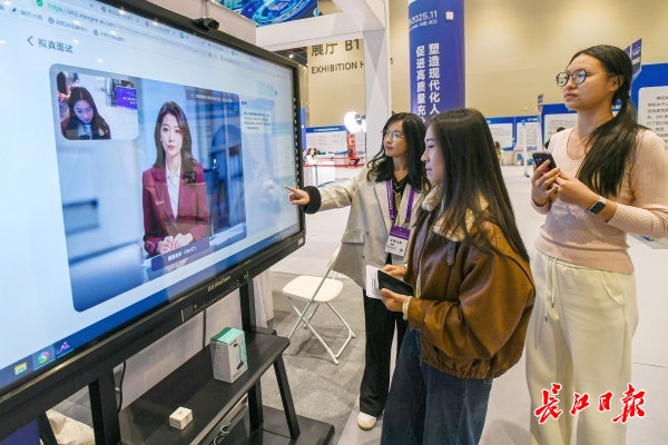 在第三届全国人力资源服务业发展大会AI智能体验区,求职者体验AI模拟面试。记者史伟实习生高云鹏摄