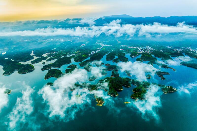 如今,仙岛湖水质常年保持在Ⅱ类以上,负氧离子浓度世界领先,成为名副其实的“天然氧吧”。