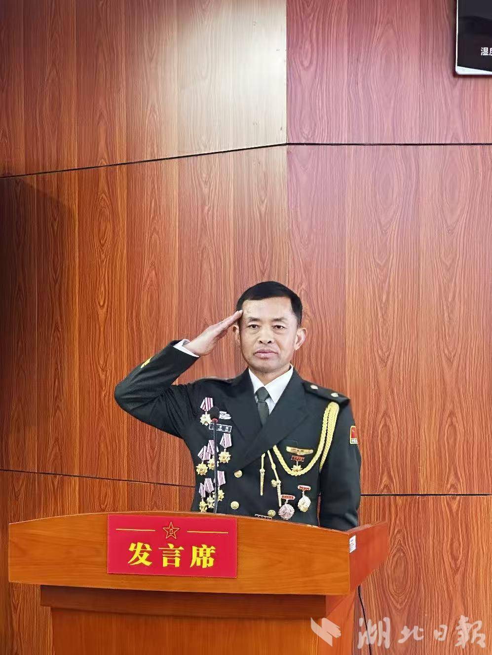 当天,刘勇辉应邀在“武昌周周讲”活动中演讲,向近百名党员干部、退役军人代表等分享自己的人生经历。当这位曾经7次立功的老兵讲到送正在清华大学读书的儿子进军营时,台下响起最热烈的掌声。