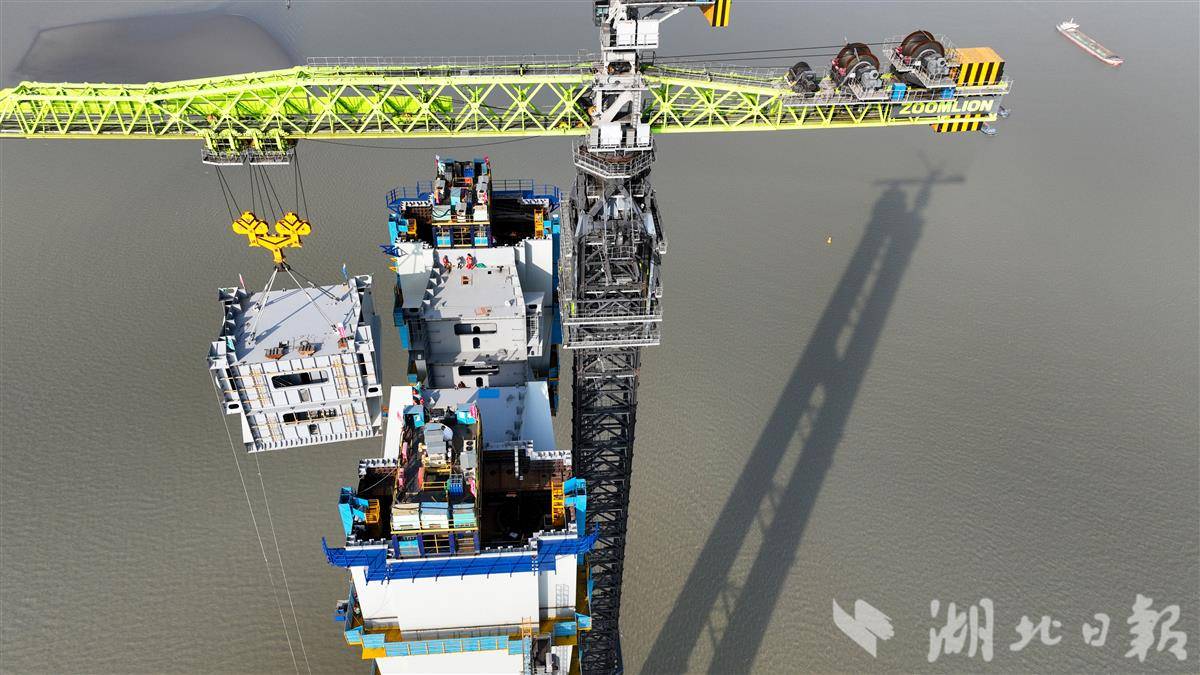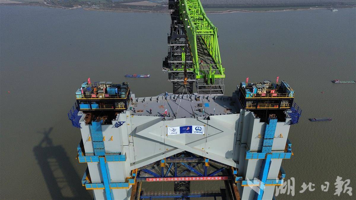 湖北日报讯(记者戴辉、通讯员邱才华、何婷婷)12月1日,随着南航道桥南主塔上横梁完成“云端合龙”,由江苏省交通工程建设局建设、中交二航局参建的张靖皋长江大桥南航道桥主塔全部实现封顶。至此,大桥南、北航道桥四座主塔主体结构全面完工。