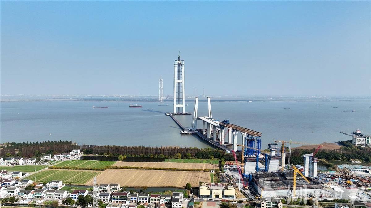 目前,全桥关键工点正齐头并进,南、北航道桥的主塔与锚碇施工协同展开,为后续缆索系统安装奠定了坚实基础。大桥预计2028年建成,建成后将大幅缩短苏州张家港、泰州靖江、南通如皋三地的通行时间,极大地促进长三角区域一体化发展,优化长江干线过江通道布局。