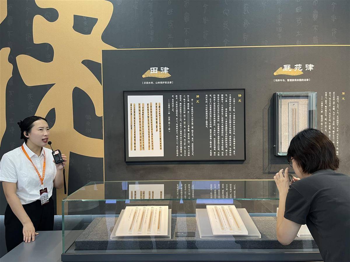 “喜”是云梦县博物馆秦简的主人,出生于2000多年前。今年8月,“喜”靠着现代技术实现了新生。云梦秦简,是我国首次挖掘出土的秦简,共1155枚,其中有一半以上记载了秦代法律。云梦县通过深入挖掘阐释、活态转化利用、融入基层治理,让简牍里的法治文化“活”了起来。