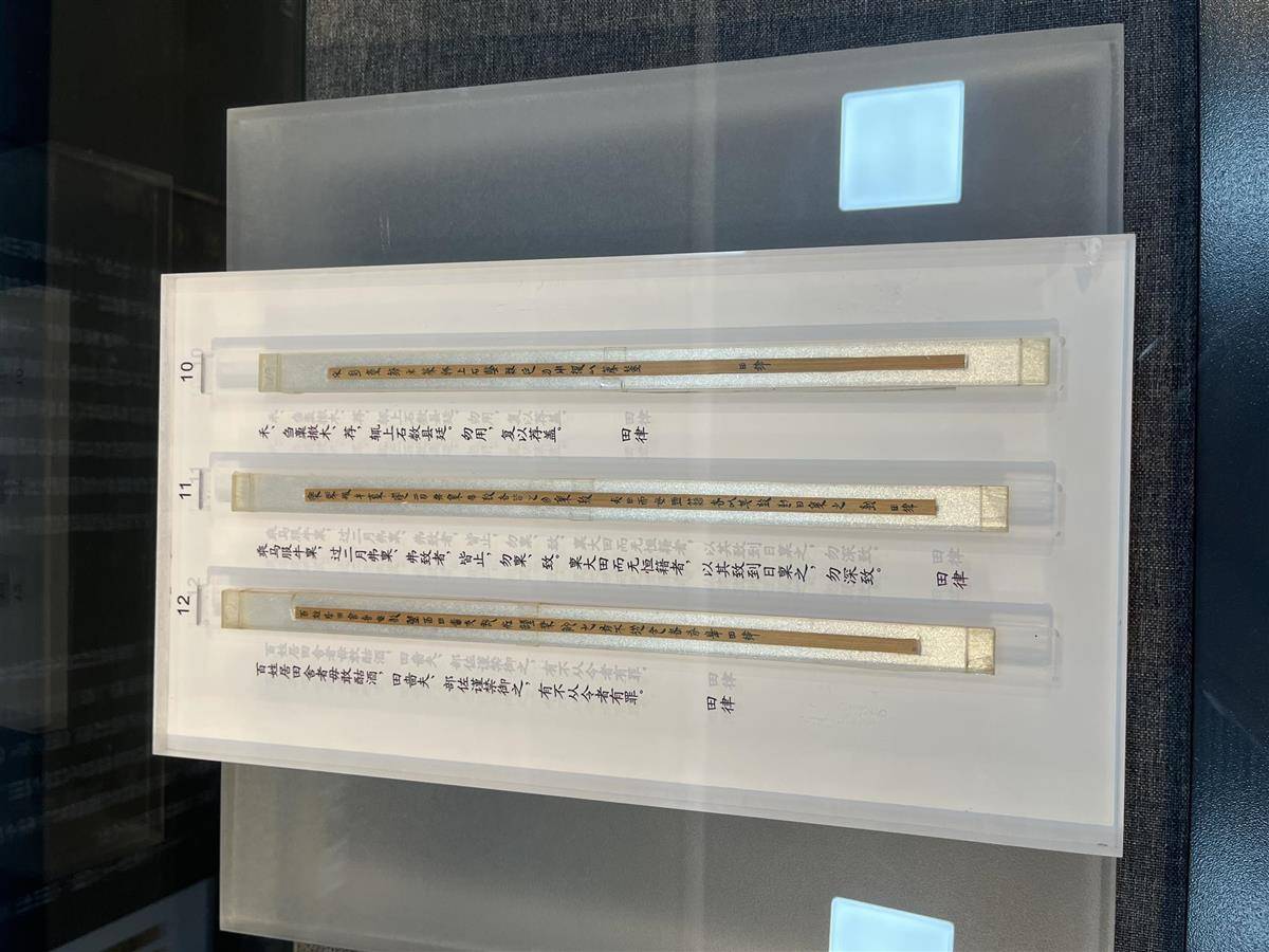 云梦县博物馆讲解员讲解秦简里的法律条文。