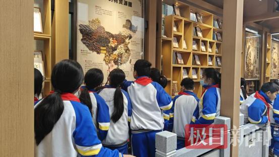 在杨际泰中医药文化展馆,清代名医杨际泰的济世生平与其著作《医学述要》的智慧,通过讲解员的叙述变得鲜活起来。学生们在“药材资源墙”前驻足,对照“中国中药材资源图”,观察各地道地药材标本,直观理解了中医药的地域特色。