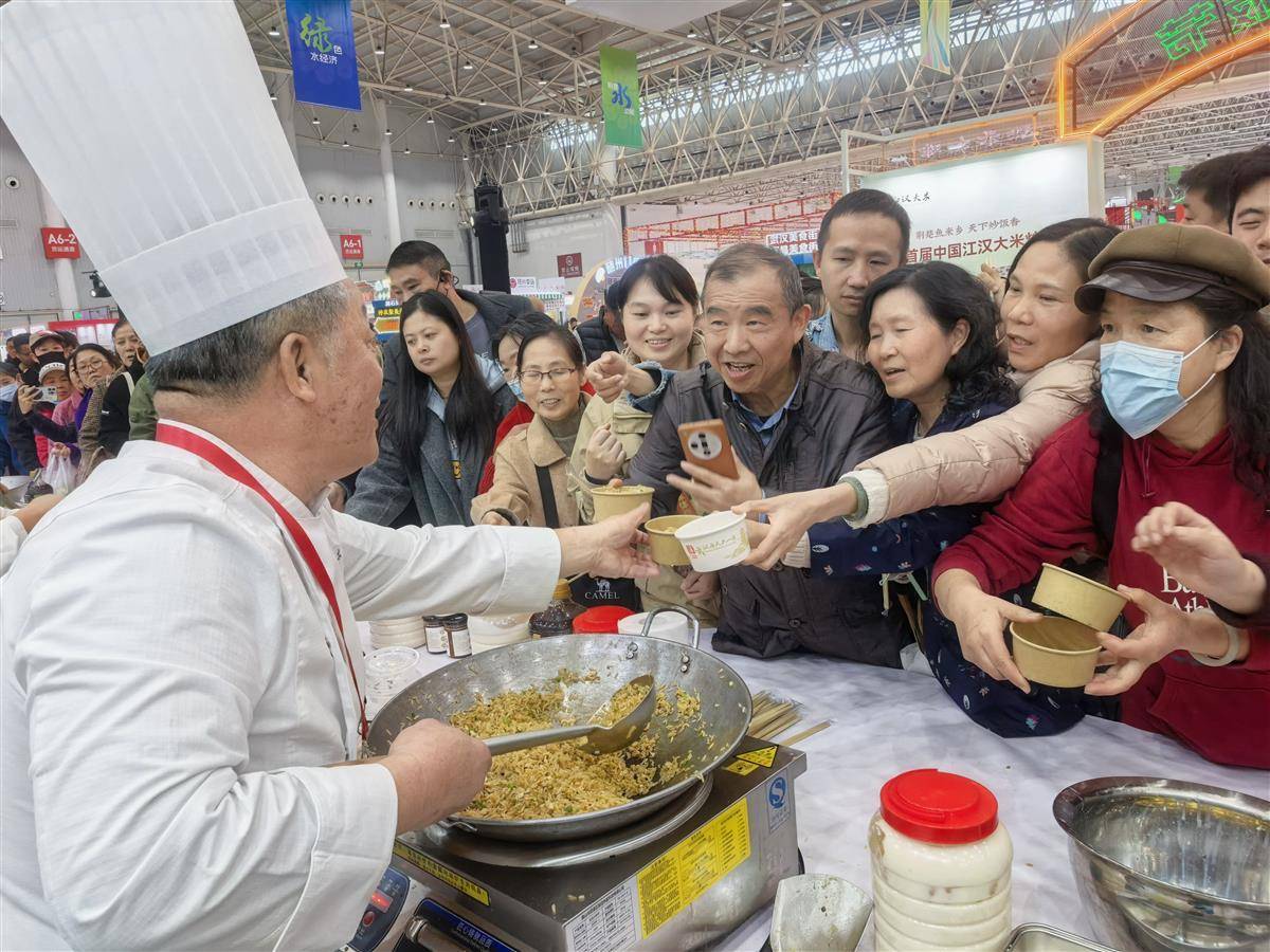 市民争相品尝现炒江汉大米