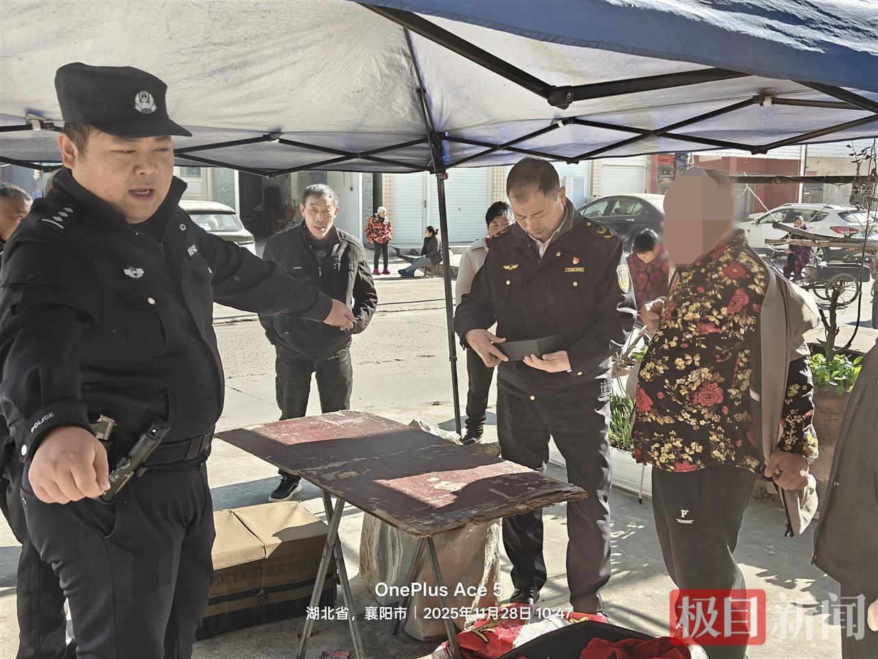 接到线索后,庙滩派出所立即前往现场进行核查。经查实,所谓“特殊技能型眼镜”等产品无生产厂家、无生产许可证、无生产日期,是典型的“三无”产品,存在严重的质量问题和安全风险。面对民警的询问,摊主也无法提供任何合法的进货凭证和生产经营资质。见此情况,民警立即与市场监督管理局执法人员取得联系,市场监督管理局执法人员到场后对在售商品进行检查,确认其“三无”属性,明确指出其行为的违法性和社会危害性,对涉事商家进行了依法处置。