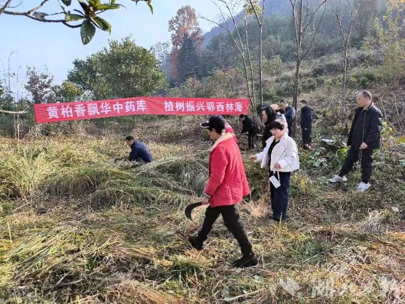 “黄柏既是‘生态树’,更是‘致富树’!”据中药材经营商胡昌锡介绍,作为“华中药库”的传统优势品种,黄柏适应性强、管护简便,不仅能固土保水、改善生态,其树皮作为名贵中药材,树龄越长品质越优,市场需求稳定。此次活动中,保水溪村村民自发自费购置优质树苗,新塘社区干部熊文率先垂范,在荒地连片栽种300株,充分发挥了先锋引领作用。为保障种植成效,农业农村服务中心工作人员现场开展技术培训,围绕育苗定植、水肥管理、病虫害绿色防控等关键环节答疑解惑,为农户提供全周期技术支持,让农户“种得下、管得好、能增收”的底气更足。