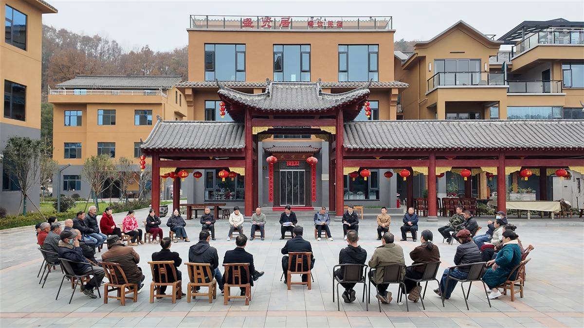 12月2日,谷城县五山镇堰河村三期民俗园广场上,30余名村民自带板凳围坐一圈,与全国人大代表、堰河村党委书记闵洪艳面对面拉家常、话发展。