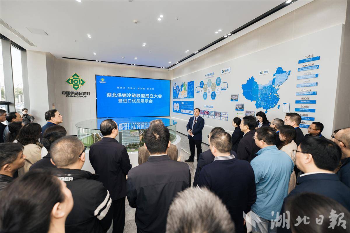 为进一步推进“商流、物流、资金流、信息流”四流合一,不断完善产业链条,就在农批联盟成立一个月后,11月4日,湖北供销冷链联盟在武汉成立。首批47家成员单位中,引入中国500强企业深圳优合集团、湖北本土冷链头部企业华沛农业集团,以及中国银行湖北省分行等金融机构,基本实现冷链产业链全覆盖。
