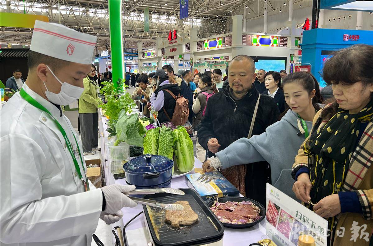 被誉为“水底羊”的长吻鮠在鱼缸中自在游弋,紫莹莹的苤蓝、翠色欲滴的羽衣甘蓝等鲜蔬列队,湖北供销“大菜商”“大渔商”展区吸引众多采购商驻足洽谈。南美白虾、阿根廷牛肋条、巴西前腱肉……在湖北供销冷链联盟进口优品展示区,市民群众排队试吃煎牛排、烤大虾等。11月28日至12月2日举行的2025湖北农业博览会,湖北供销集团携出资企业组团参展,3000余件新特优产品集中亮相,“吸粉”无数。