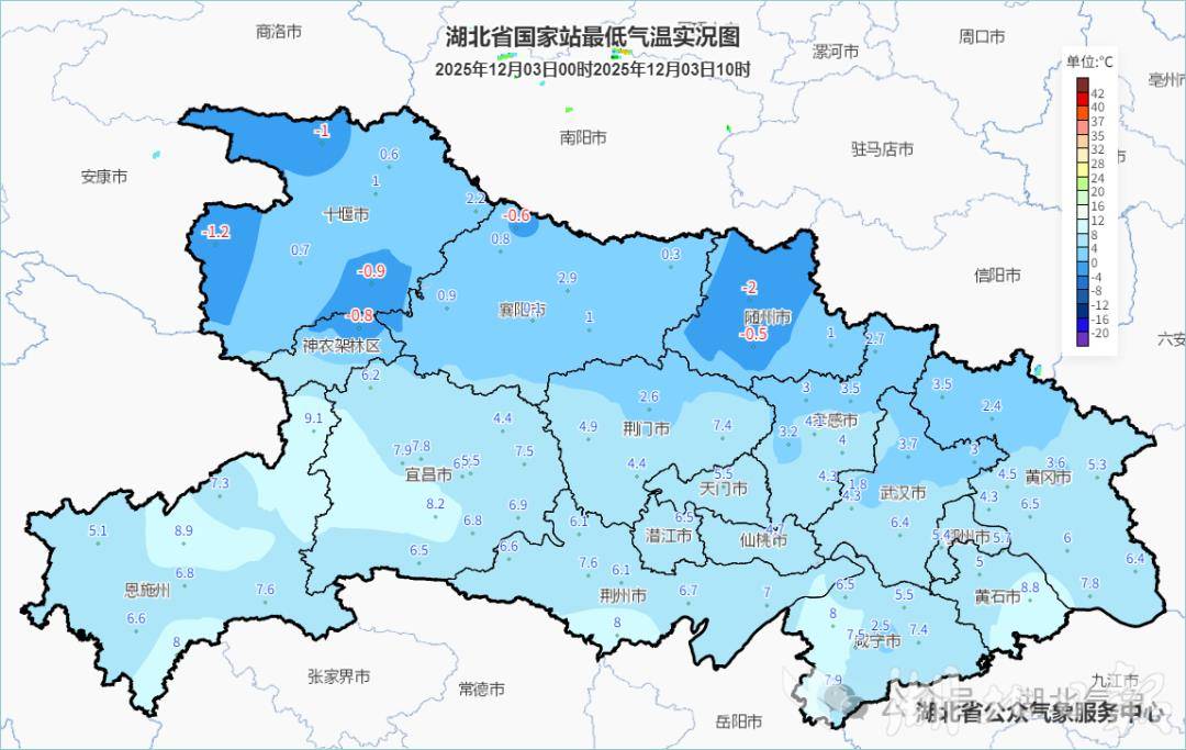3日虽然阳光上线但降温仍未结束,早晨十堰、襄阳、随州、神农架部分站点最低气温降至0至-2℃,15时大部地区气温10至15℃,东部和南部地区气温继续小幅度下滑,同时中东部地区仍有4到6级偏北阵风。预计3日晚到4日全省转阴,西部地区会有短时小雨飘落,其中高海拔地区还会有雨夹雪或雪出现,最高气温会降至本轮冷空气过程的最低点,大部地区仅9至12℃。5日开始全省大部地区转为多云到晴的天气,最高气温明显回升,但由于辐射降温全省最低气温将降至0至5℃,昼夜温差拉大,公众早出晚归需注意保暖。