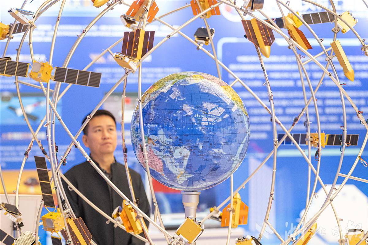 12月3日,一名嘉宾在“楚天”星座的模型前参观。(湖北日报全媒记者 任勇 摄)