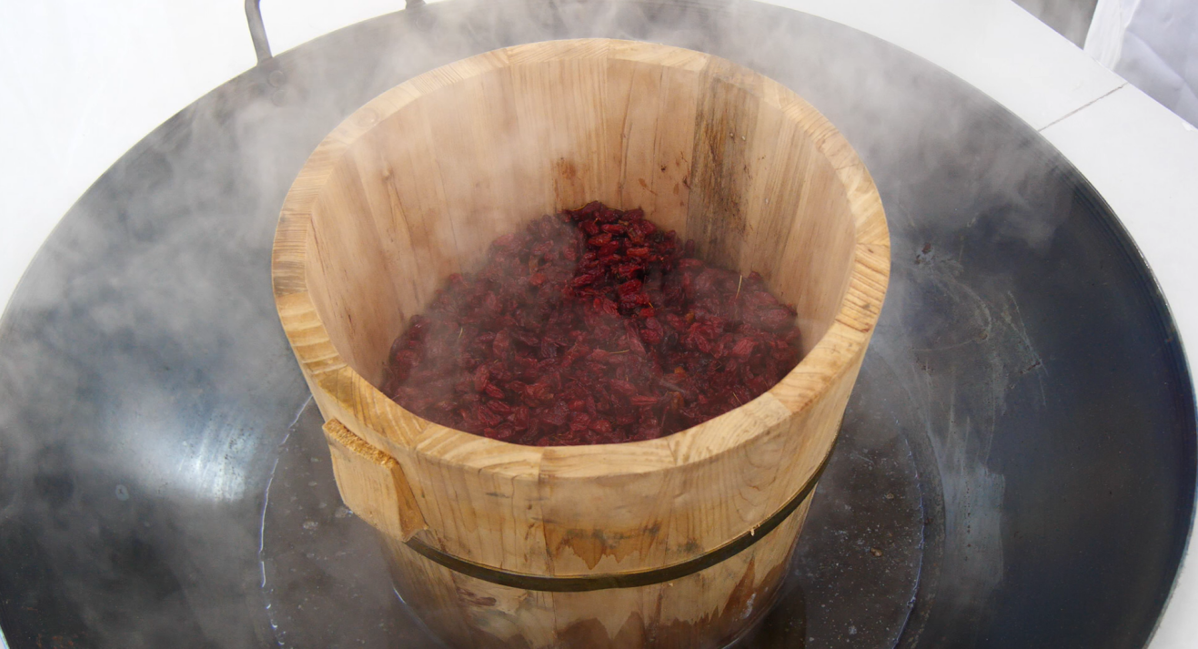 今年64岁的刘军出身医药世家,从1981年开始钻研古法炮制技艺,潜心学习酒制山茱萸在补肝肾、调气血方面的独特功效与药食同源的相关知识。