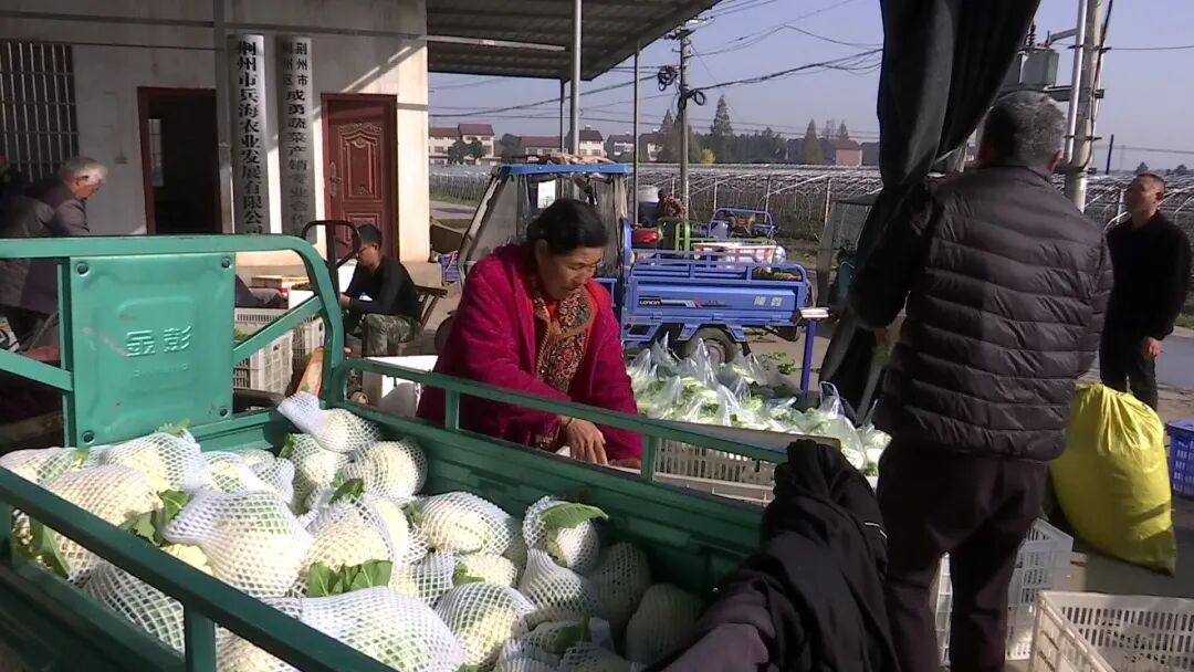 村口的繁忙景象印证着他的话。卡车与农用小三轮鱼贯而出,车厢里南瓜、芹菜、香菜、菠菜捆扎整齐,成勇蔬菜合作社负责人殷香勇正指挥工人装车:“花菜卖到两元一斤,合作社一天能多销四五千斤,增收超万元!”作为当日“销冠”的莴苣,单日运输量就达5万斤。凭借高效流通体系,村里10多个品种的蔬菜清晨采收后,上午便直达荆州中心城区农贸市场与超市,更远销江西、湖南等地。
