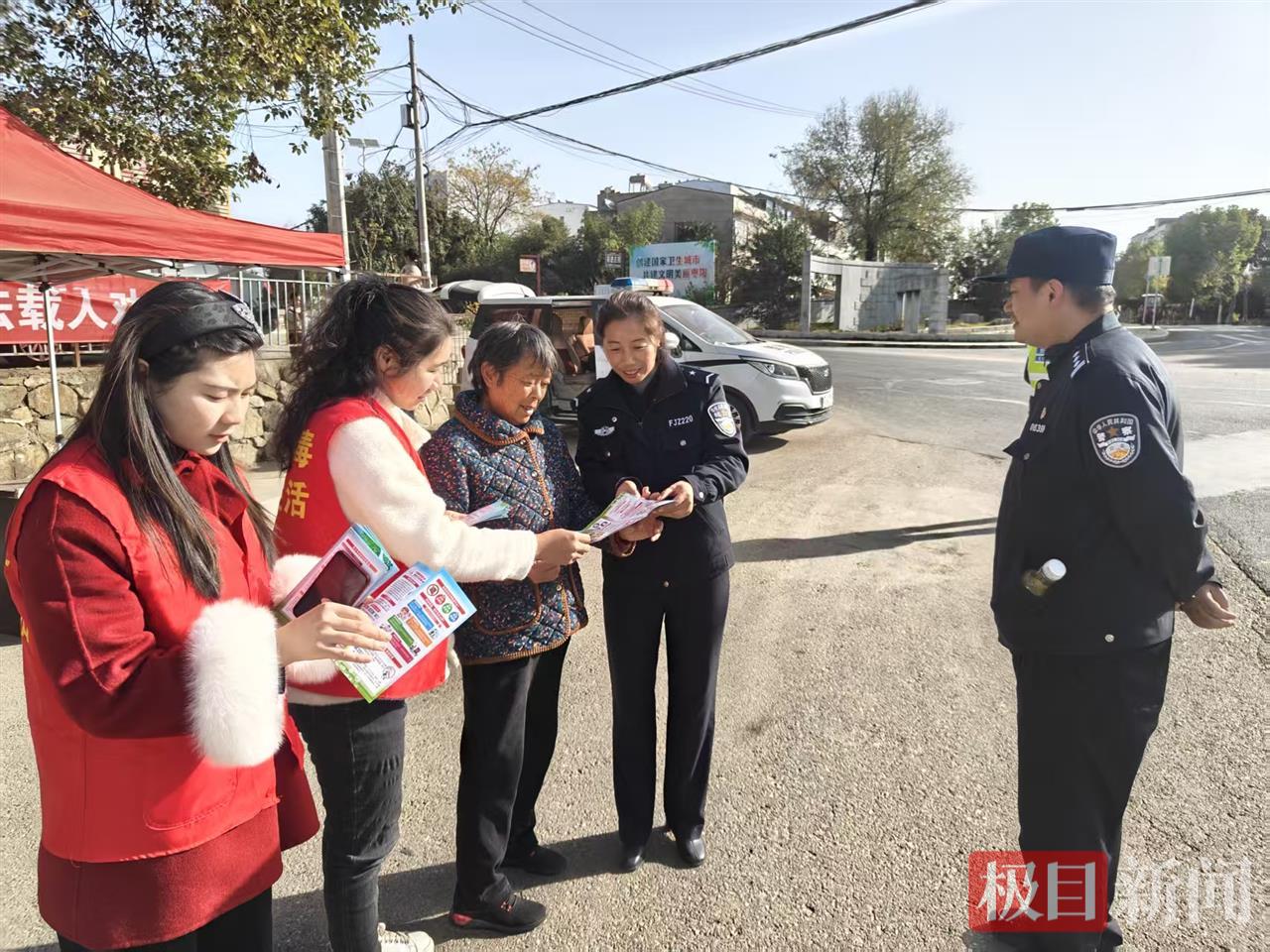 12月4日,湖北枣阳市公安局环城派出所组织民警深入辖区村组路口,开展“接地气、入人心”的禁毒宣传活动,将禁毒知识送到群众身边。
