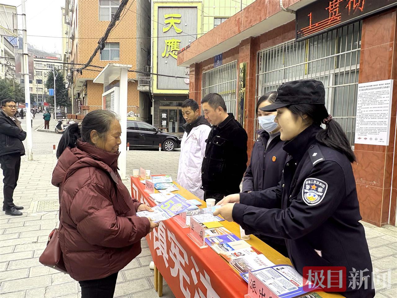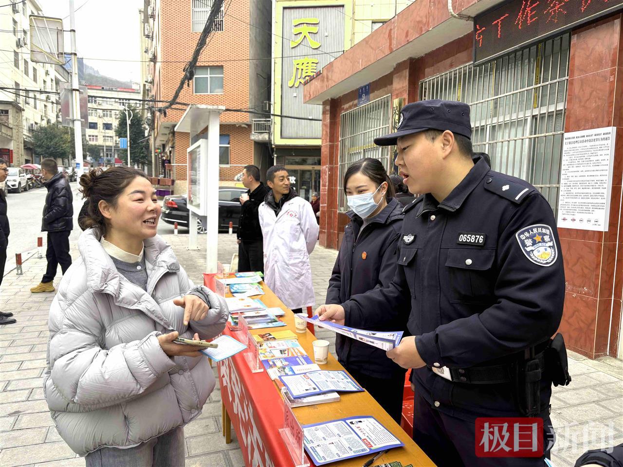 活动现场,民警与工作人员通过悬挂宣传横幅、发放普法宣传单、现场答疑解惑等形式搭建宣传平台,同时深入沿街商铺、居民家中开展入户走访。针对群众日常生产生活需求,民警用通俗易懂的“家常话”解读宪法核心要义,普及婚姻家庭、邻里纠纷等常用法律知识,同步讲解冬季防火、防盗防骗、防一氧化碳中毒等安全防范要点,引导群众自觉学法、懂法、守法、用法,遇到问题依法维权。