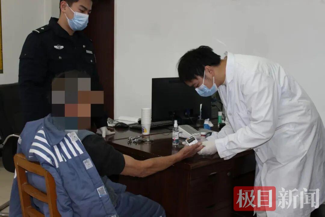 “朱大爷,来量量血压,最近有没有头晕、胸闷的情况?”驻所医生许俊康几乎每日定时穿梭在监区各个角落,重点关注老年在押人员和患病人员的身体状况。他熟练地为老人系上血压计袖带,仔细记录测量数值,耐心叮嘱老人用药注意事项与日常保健要点。