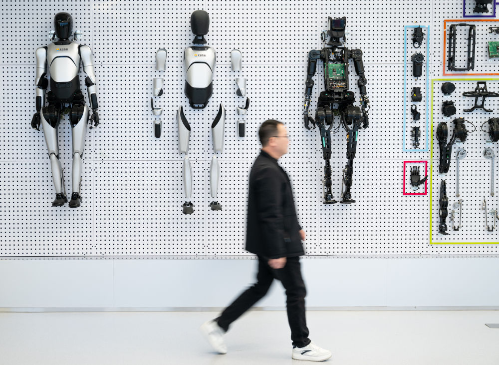 ↑ 12月4日,参观者在湖北人形机器人创新中心参观。