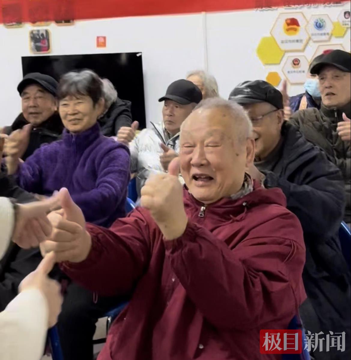 当经典旋律《甜蜜蜜》的和乐声在活动室内缓缓响起,老人们的脸上漾开了温柔的笑容,有的跟着节奏轻轻晃动低声哼唱,有的转头和身旁老友相视一笑,熟悉的曲调如同冬日暖阳,让温馨的气息在整个空间里悄悄弥漫。