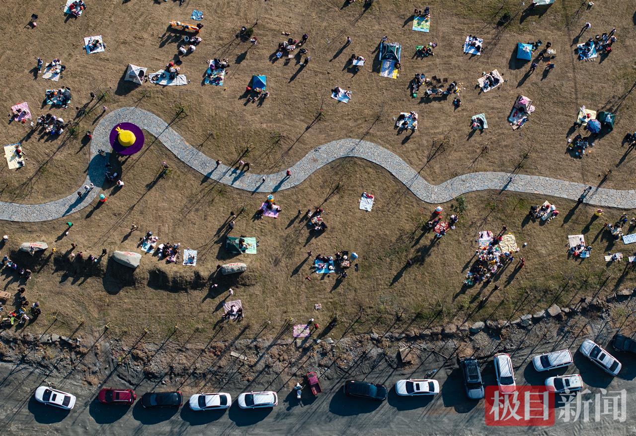 12月6日,湖北省竹山县城关镇霍河库区刘家山茶场多个休闲娱乐草坪和霍河流域多个休闲健身广场热闹非凡,许多市民放下手头的工作,带上家人,驱车赶到库区茶山晒太阳,以“拍照打卡+有氧运动+炸鸡+可乐+遛娃”的方式,在山清水秀、空气清新的库区茶山或溪流潺潺的霍河边,观赏自然美景,做亲子游戏,放松疲乏身心,尽享周末休闲时光。