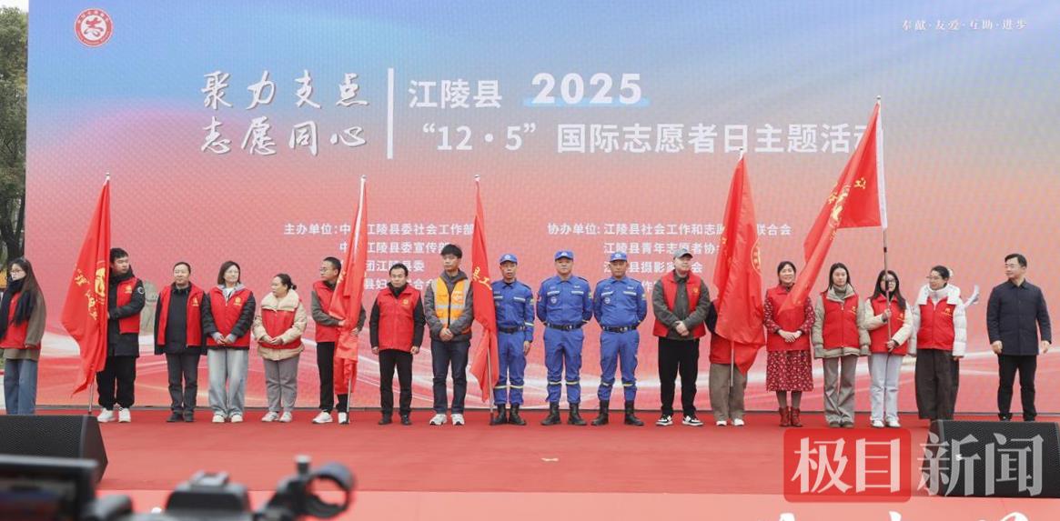 12月5日,第40个国际志愿者日如约而至。在湖北省江陵县,一场以“聚力支点˙志愿同心”为主题的国际志愿者日盛会暖心上线,活动集结了来自各县直单位、乡镇(管理区)、志愿者代表、爱心商家、征文摄影获奖者及居民代表等的500余名志愿者参与。现场,表彰、授旗、趣玩、便民等一站式解锁,志愿者用鲜活的方式传递“奉献、友爱、互助、进步”的志愿精神。