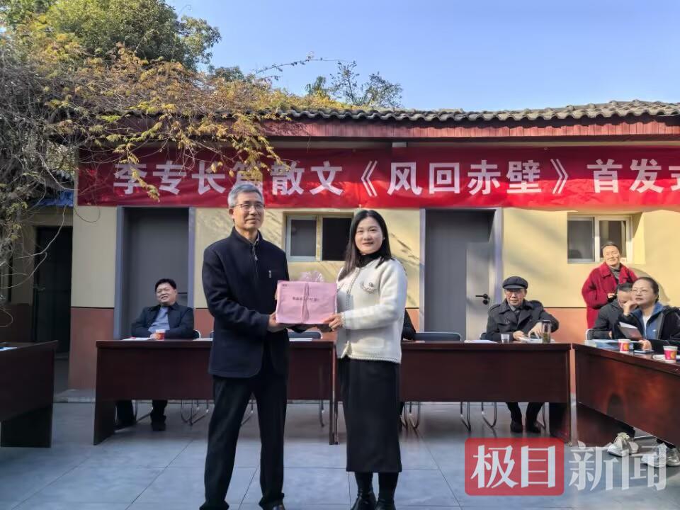 冬日暖阳,书香远溢。12月6日,李专长篇散文《风回赤壁》首发式在赤壁市中伙铺董家村娘娘山文学创作基地举行,市文联、六县文联及市区作协等相关单位负责人近40人参加活动。活动现场,李专给赤壁市档案馆、赤壁市图书馆、赤壁职教集团等单位捐书100册。