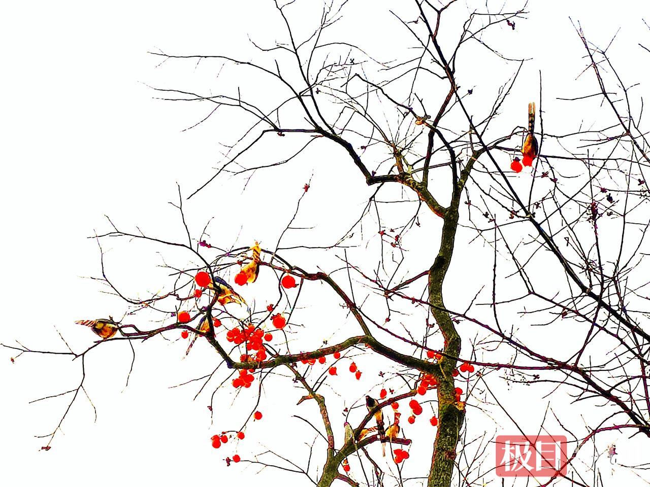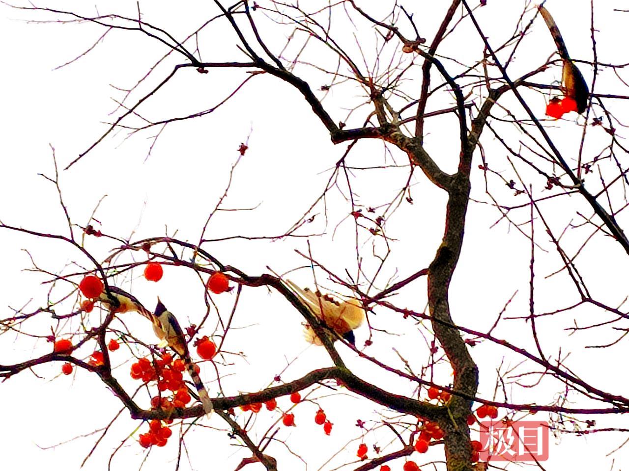 村民介绍,院子周边有许多鸟类,他们每年都没有采摘树上的柿子,只为鸟儿越冬有“柿”粮。