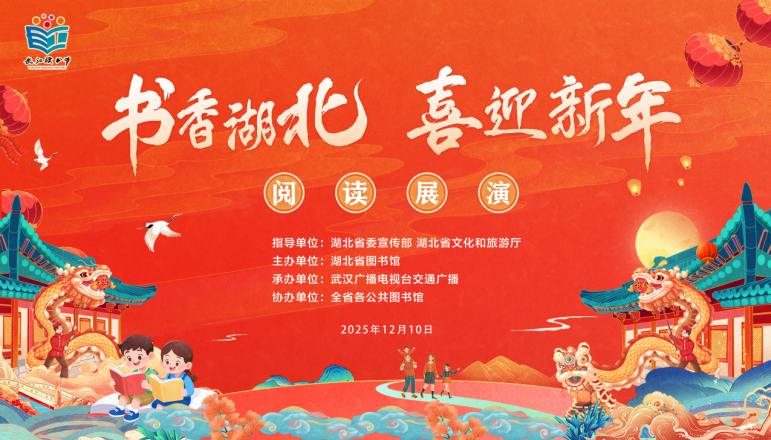 12月9日至10日,长江读书节2025年重要活动之一——“书香湖北・喜迎新年”阅读展演活动,将在湖北省图书馆启幕。该活动由中共湖北省委宣传部、湖北省文化和旅游厅指导,湖北省图书馆主办,武汉广播电视台交通广播承办,全省各公共图书馆协办。