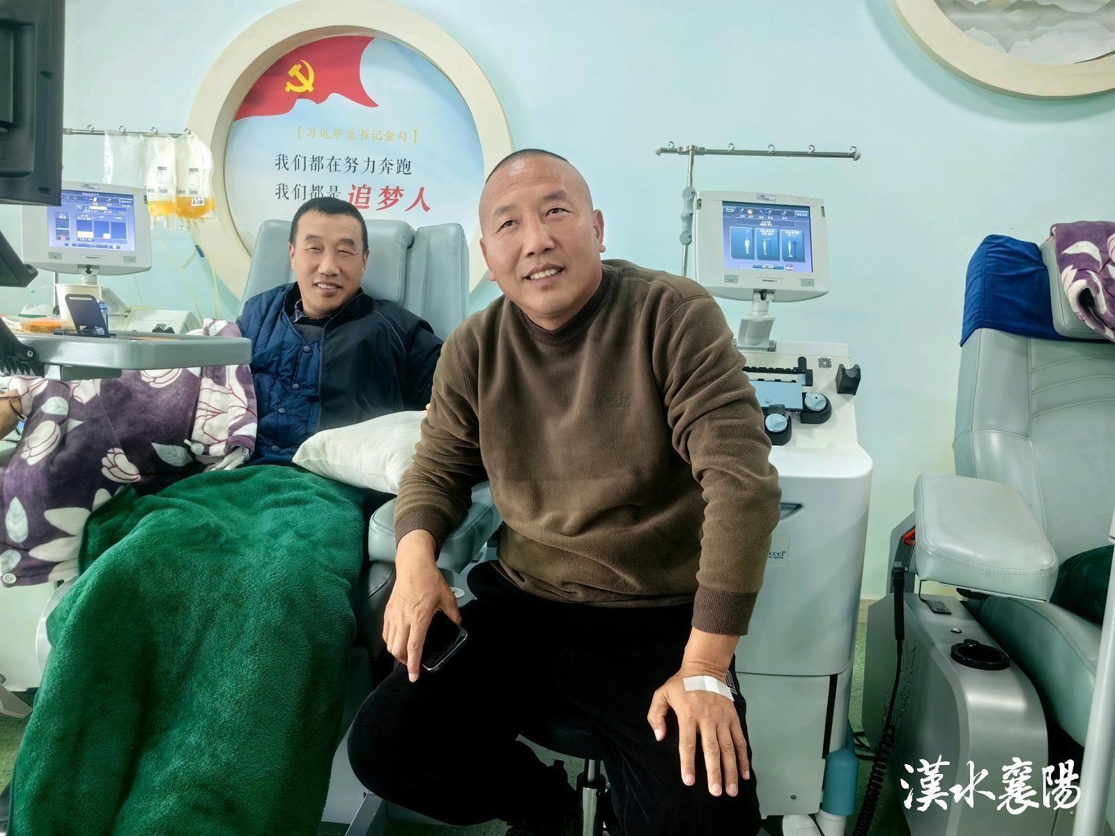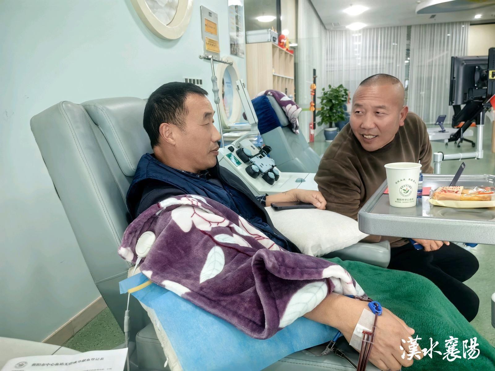 12月6日上午,襄阳市中心血站机采室很安静。两个中年男人并排坐着——一个正在捐献血小板,另一个安静地陪在一旁。偶尔,两人低声交谈几句,眼中带着只有彼此才懂的默契。