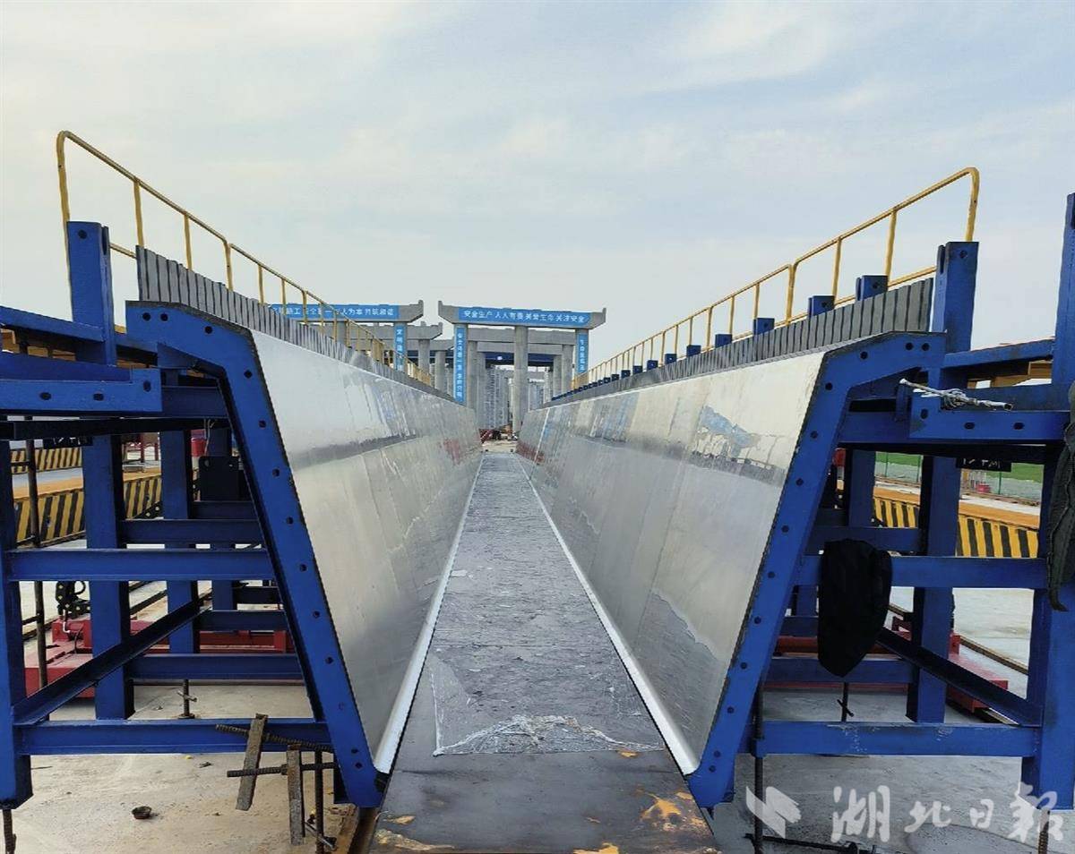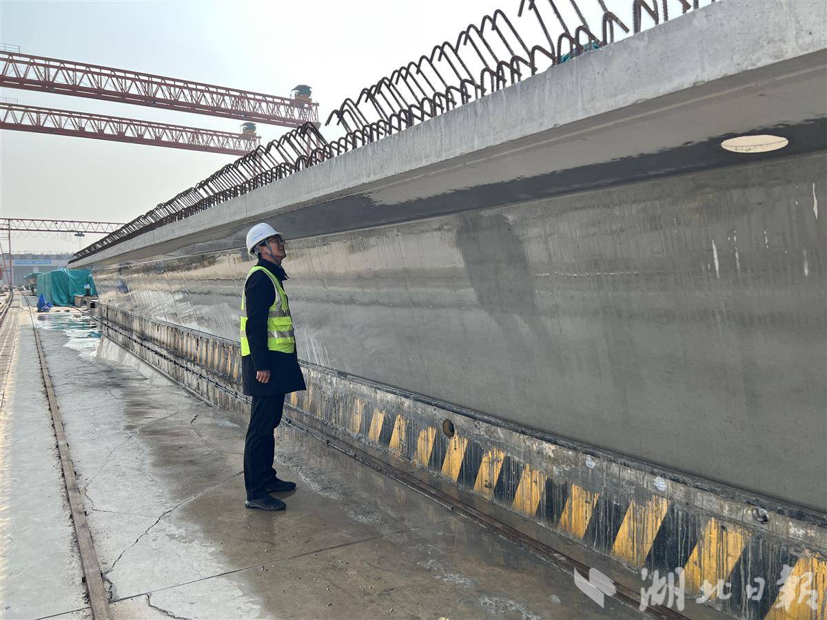 箱梁,桥梁预制拼装的核心构件。如果把架桥比作搭积木,箱梁就是最长、最结实的积木块,由混凝土浇筑而成,表面大多粗粝甚至硌手。12月9日,在位于咸宁市簰洲湾镇的汉南长江大桥及接线工程HNTH-6标段梁厂,湖北日报全媒记者却看到一种有着镜面效果的箱梁。