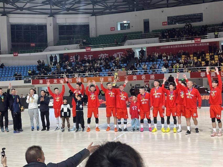 湖北日报讯(记者郭晓明、通讯员李吴琼、关洪磊)12月13日,在2025湖北省全国百强县篮球联赛末轮角逐中,潜江队主场以76比62击败大冶,以13胜1负的成绩捧得冠军奖杯。