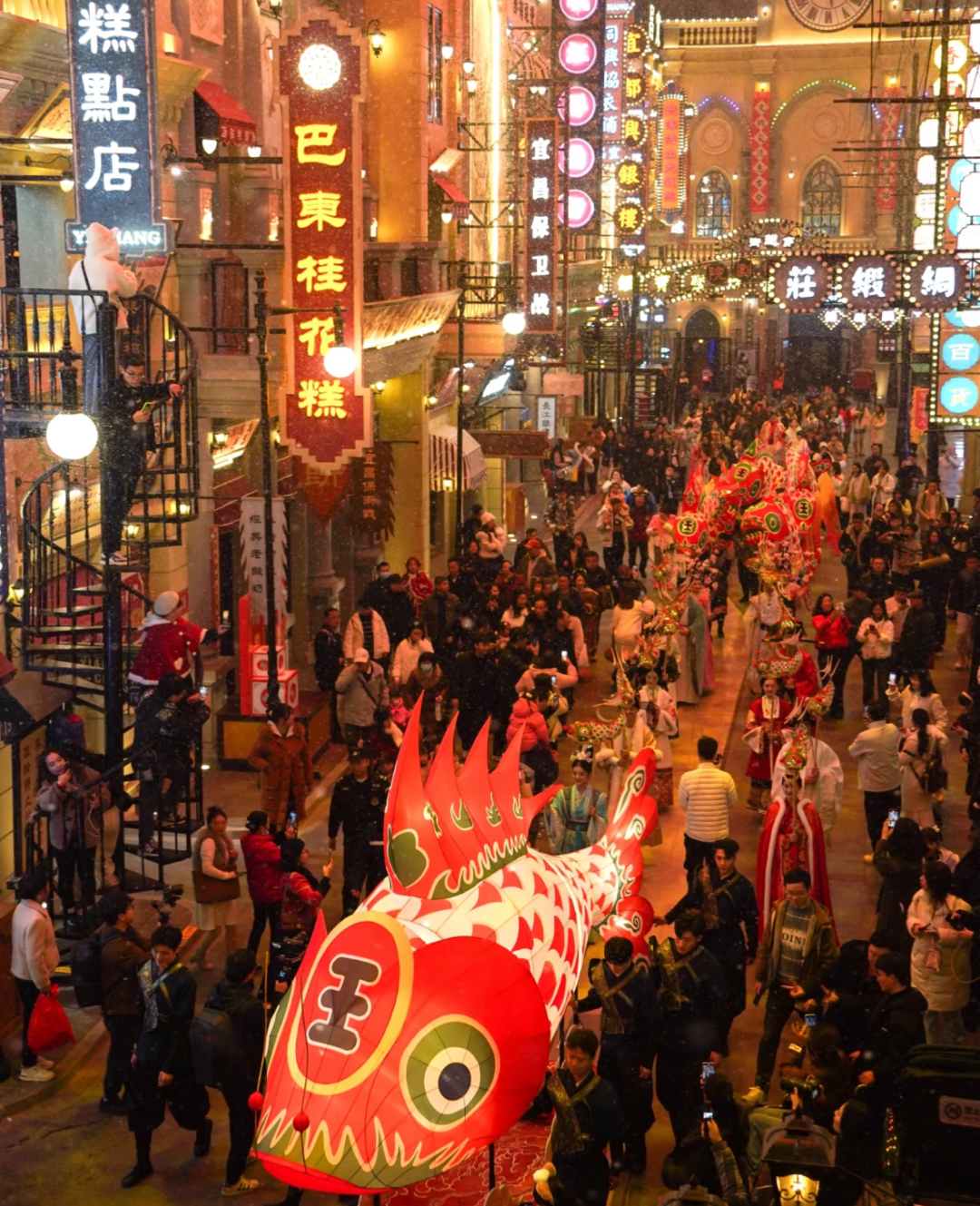 作为本次活动的核心引爆点,武汉江宸天街主会场将以“一场秀、一场展、一场市集、一波福利”为主线,打造沉浸式、互动型、全业态的消费体验空间。现场不仅设置巨型灯笼矩阵、非遗艺术展等打卡场景,更集结各类特色市集与品牌促销,融合文化氛围与实在优惠,为市民开启一场好看、好玩、好买的跨年消费之旅。