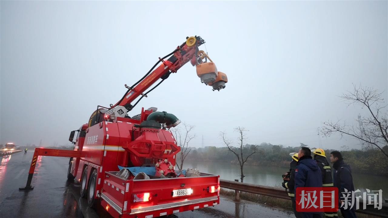 在泡沫覆盖和沙袋围堵的共同保护下,消防员联合相关单位技术人员,对事故油罐车实施倒罐转移作业,将剩余汽油安全转移。