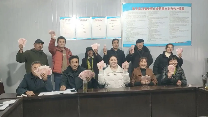 湖北日报客户端讯(通讯员 王娜、李晓瑶)寒意渐浓的12月12日,随县草店镇金锣山村食用菌种植专业合作社内暖意融融、笑语盈盈。一年一度的分红大会如期举行,12位股东与村集体代表早早齐聚,在签字、按手印的娴熟流程中,喜领10.309万元现金红利,让一年的辛勤付出化作沉甸甸的获得感。