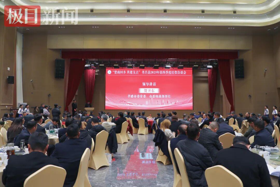 楚商归乡聚孝昌,共建支点启新程。12月15日,孝昌县2025年第四季度经贸洽谈会暨项目集中签约仪式在湖北农夫子教育培训基地举行。活动以乡情为纽带、以发展为目标,特邀130余名孝昌籍在外商会代表、企业家、校友代表及招商大使,共话桑梓情深,共商合作大计,共谋孝昌高质量发展新蓝图。孝感市委常委、统战部部长贺卫东出席签约仪式,孝昌县委书记李惠芬,县委副书记、县长胡飞,县人大常委会主任蔡传杰等县领导参加活动。