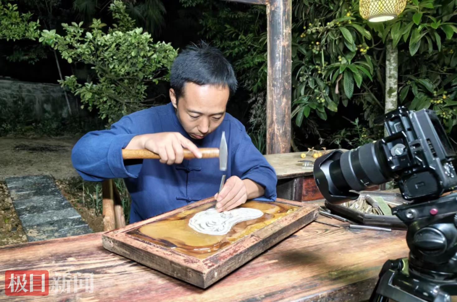两年来,团队累计拍摄30余条短视频,内容涵盖来凤漆筷、古法造纸、蓝印花布等十多项非遗,足迹遍布浙江、云南、湖南等多地。每条五六分钟的成品背后,是团队十天、半个月甚至大半年的付出。“曾为一个延时镜头,在现场守了一天一夜。”摄影师向成说。