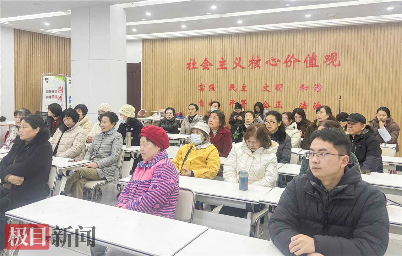 12月17日,在湖北省荆州市荆州区郢城镇凤鸣社区党群活动中心,30多位社区居民济济一堂,一场将城市生活垃圾分类主题宣讲融入声乐课堂的互动活动正在热闹上演。